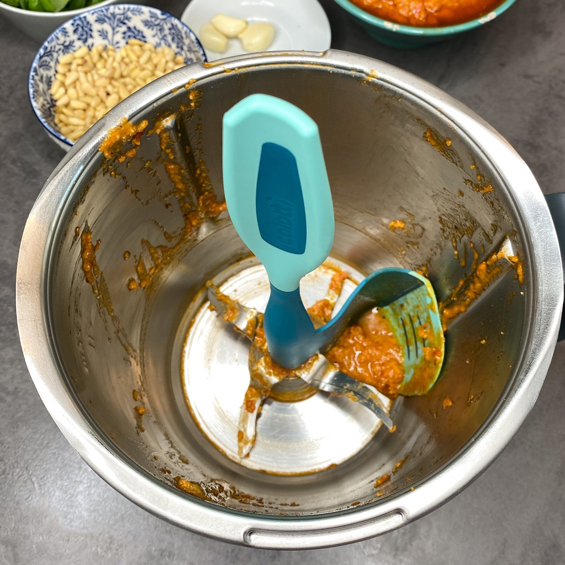 Con quali elettrodomestici da cucina è compatibile la spatola rotante Calotti®? Abbiamo sviluppato la nostra spatola rotante Calotti® per i modelli Bimby TM6, TM5 e TM31. Sfortunatamente, gli elettrodomestici da cucina di altri produttori differiscono nella forma del boccale e del coltello del boccale, quindi la nostra spatola rotante non può essere utilizzata universalmente. Nei forum e nei gruppi Facebook ci sono sempre utenti che affermano che la spatola rotante Calotti® si inserisce nella Monsieur Cuisine. È corretto? La spatola rotante Calotti® può ora essere ordinata anche per Monsieur Cuisine Connect®. La spatola rotante Calotti® è adatta anche ai mancini? La spatola rotante Calotti® non è stata sviluppata esplicitamente per destrimani o mancini. Il design si basa sulle condizioni tecniche. L'allineamento della spatola rotante Calotti® segue l'allineamento della lama del coltello del boccale e quindi in senso orario. Se la spatola rotante Calotti® fosse ruotata in senso antiorario, lavorerebbe contro il coltello. Da un lato ciò renderebbe l'operazione più difficoltosa e, dall'altro, provocherebbe ripetuti danni a contatto con il coltello. Con un po 'di pratica, la spatola rotante Calotti® può essere ruotata in senso orario con la mano sinistra ed è quindi adatta anche per mancini! Ho comprato una spatola girevole da un altro rivenditore; secondo la confezione, è stata prodotta in Cina. È un originale? Sfortunatamente, ci sono diverse contraffazioni del nostro prodotto sul mercato. Per lo più questi sono offerti da rivenditori dubbi. Le spatole girevoli prodotte in Cina non sono mai originali. Sconsigliamo l'acquisto e l'uso di tale plagio, i requisiti necessari per il contatto alimentare non sono soddisfatti e c'è un rischio per la tua salute! Puoi trovare maggiori informazioni su calotti.de/plagiate