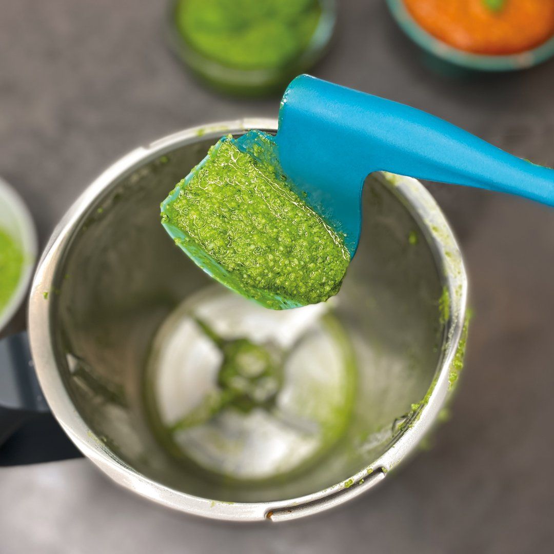 Per rimuovere, scavare e porzionare. La spatola rotante brevettata Calotti® Silicone si inserisce perfettamente tra il coltello e la parete del boccale e raccoglie il cibo da miscelare in un attimo grazie al lato flessibile in silicone.